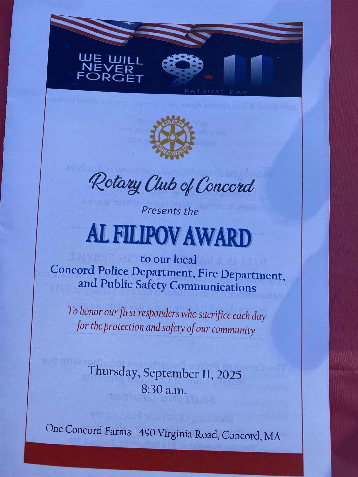 Al Filipov Award Ceremony 9/11 2025