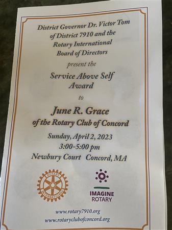 On April 2nd 2023, we had an award ceremony in honor of June Grace, recipient of The Service Above Self Award